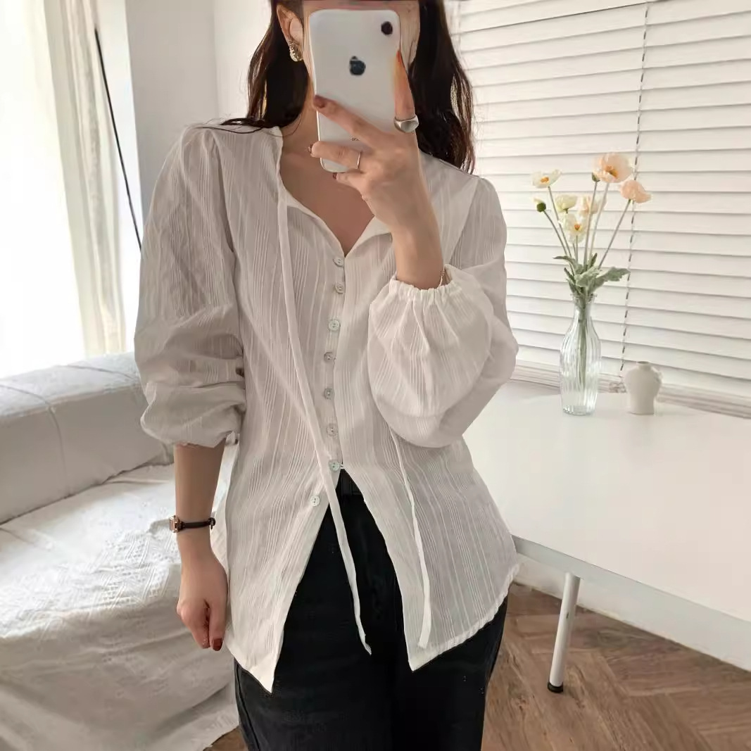Women's Casual Single-breasted Solid Color Color Matching Long Sleeve Lapel Shirt